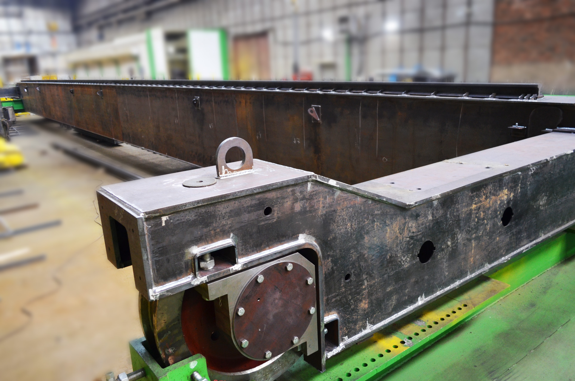 Мы изготовили и смонтировали кран мостовой электрический г/п 10+10 тонн, управление краном осуществляется из кабины, с магнитной траверсой, пролет 28 метров, режим работы; А7, предназначен для транспортировки металла.