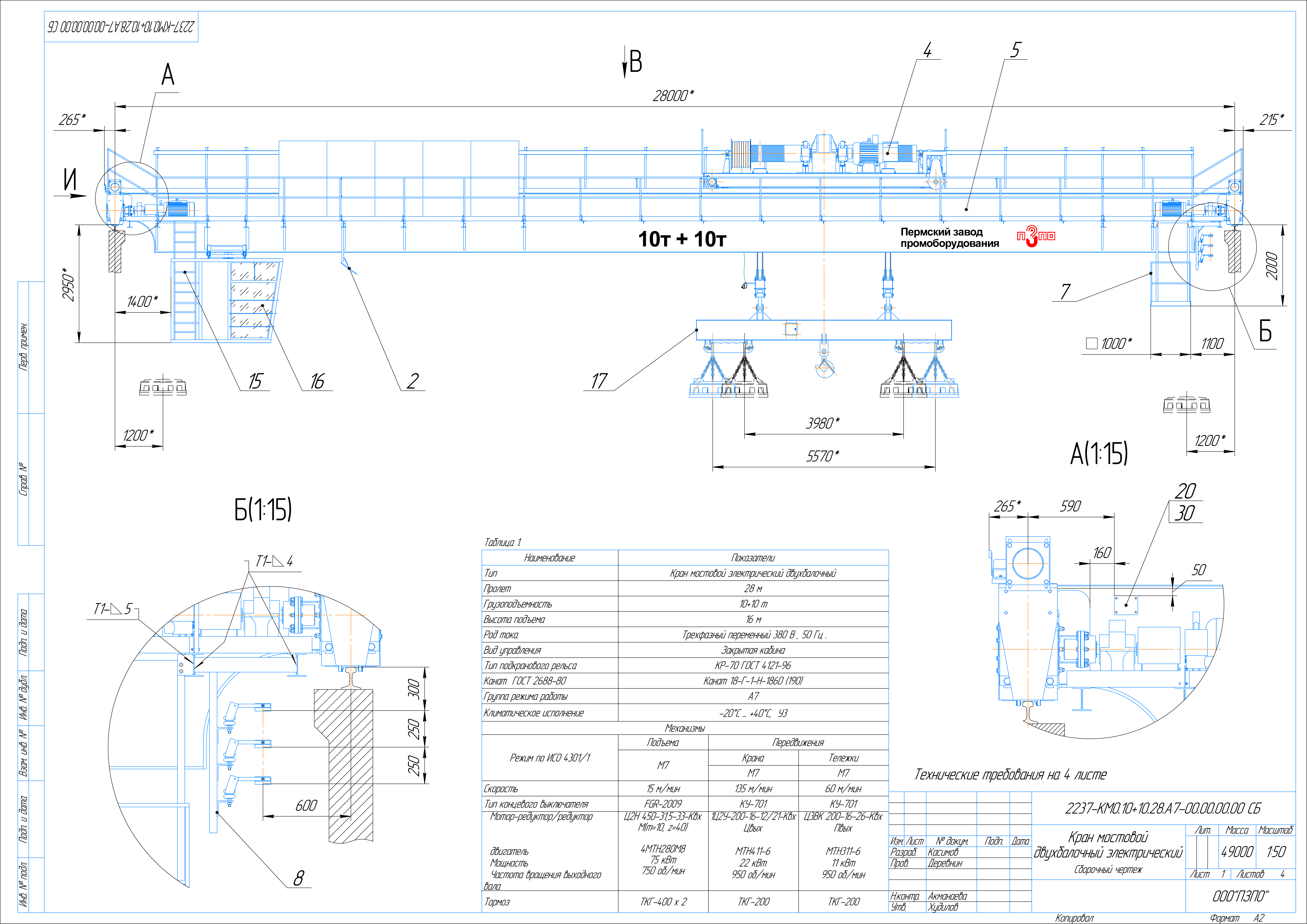Проектирование мостового двухбалочного крана грузоподъёмностью 10+10 тонн (с магнитной траверсой), пролет 28 метров